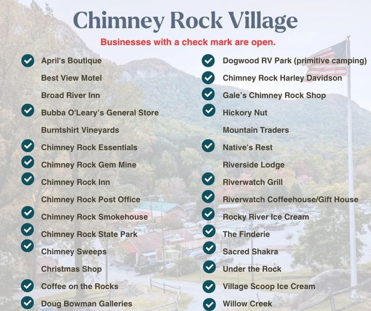 We are devastated physically and mentally by what has happened to our Village of Chimney Rock, the Town of Lake Lure, and our beloved Bat Cave in North Carolina. These three side-by-side towns have suffered so much loss of property that it is unfathomable. Please help us rebuild our little area known as North Carolina's Outdoor Destination. We look forward to the days when we can welcome back visitors, tourists, and local hangouts to our stunningly beautiful towns again that have been taken away from us by a hurricane.